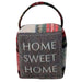Red Gray Plaid "Home Sweet Home" Doorstop is a sand-filled fabric doorstop with a large handle and red and gray plaid pattern. Doostop has a cube shape and reads, "home sweet home" in white lettering. It is a great way to add a fun twist to a room during the winter season and it makes a great gift. Measures approx. 8" high.
