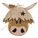 The Welcome Highland Cow is a decorative highland cow head figurine, made of natural-grain wood with a raw, unfinished texture. The cow has a distressed painted finish and friendly face, along with a jute hanger with raffia detailing and a paper tag reading “Welcome”. This cow makes a rustic, charming farmhouse greeting for the home, displayed hanging on a wall or door. Measures 16” high by 16” wide by 1.75” deep. Made in the USA!