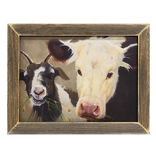 The Pals on the Farm Print is a decorative wooden print held inside of a rustic natural wood frame. The print features intricate painted artwork of...