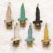 Skinny Mini Spring Gnome Ornament sells as an assortment of six wooden gnome ornaments. Ornaments feature a primitive slat finish and gnome head design with dimensional detailing and a dried vine beard. It is proudly made in the USA and has a painted tan face with a white, mauve, black, yellow, blue, or green hat. Ornament looks great on a tree, hook, nail, or floral branch and is easily hung by the jute hanger attached at the back. Measures 11.5" high by 5" wide. Please note: This item features an assortment of designs which are each sold individually (not as a set).