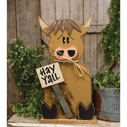 View full detailsRustic Wood Hay Y'all Highland Cow On Base - 25.25"H