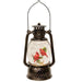 Lighted Cardinal Water Globe Lantern sells as an assortment of two lanterns with a snow globe design. Lantern has a brushed bronze finish and depicts a winter scene with a pair of cardinals perched on a snow-covered holly or pine branch. Lantern can be sat on any flat surface, but has a metal handle for hanging and transport. It casts a soft glow when turned on and requires 3 "AA" batteries to operate (not included). It has a built-in timer function that rotates every six hours and measures 8.5" high by 4.5" wide. Please note: This item features an assortment of designs which are each sold individually (not as a set).