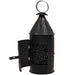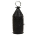 Punched Black Metal Paul Revere Lantern has a black finish and punched detailing with a functional door for displaying flameless candles. It can be displayed freestanding or hung by its round metal handle and it measures 14" high by 5" in diameter.