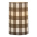 Gray Large Buffalo Check Pillar is a battery-operated pillar candle with a large gray buffalo check pattern. Includes an on and off switch, as well as a timer feature that operates lit for six hours and then off for eighteen hours. Measures 5" high by 3" in diameter. Requires three AAA batteries for operation (not included).
