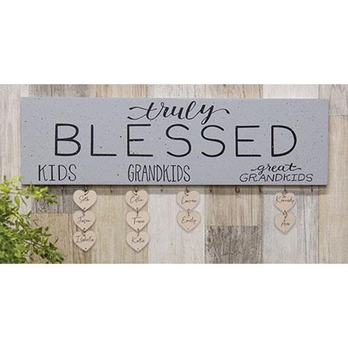 Truly Blessed Kids Tag Sign is made of wood and features a speckled gray-blue finish. Sign has two pre-installed keyhole slots for hanging display ...