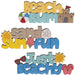 The Beach Bum Sitters are an assortment of three word phrase signs made of wood with a cutout design. One sitter reads “sand sun fun” with a sand dollar, sunshine, and ice cream graphics. Another sitter reads “Just Beachy”, along with sunshine, sunglasses, and flip-flop graphics. The third sitter reads “Beach Bum”, complete with a sandcastle and beach ball graphic. These sitters are colorful and fun, perfect for accenting a tray or frame during the summer season. Each sitter measures 2.75” high by 7” wide by .25” deep. Please note: This item features a variety of designs which are each sold individually (not as a set).