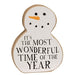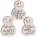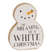 Christmas Carol Chunky Snowman Sitters make a charming addition to Christmas decor. Carved from wood in a whimsical snowman shape, each sitter features a white painted finish with raw edges. The snowmen feature friendly faces and black painted text. One snowman reads “I’m dreaming of a white Christmas,” one reads “have yourself a merry little Christmas,” and one reads “it’s the most wonderful time of the year.” A flat bottom edge allows each snowman to stand freely on a shelf or tabletop. Each snowman measures 4.5” high by 3.5” wide by .75” deep. Please note: This Item features a variety of designs which are each sold individually (not as a set). Please add a note in your cart to indicate your preference.  If no style is specified, one will be selected at random by our team.