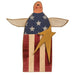 The Americana Angel Sitter is a decorative angel figurine made of natural-grain wood. The angel is painted with a red, white, and blue stars and stripes American flag design, complete with a pair of white wings and a gold star. This angel brings a rustic, primitive accent to the home during the patriotic season, displayed propped on a shelf or hanging using the metal ring hanger on the back. Measures 12.75” high by 11” wide by .75” deep. Made in the USA!