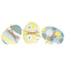 Dots & Stripe Wooden Easter Egg Sitters bring a unique, colorful touch to tabletop Easter decor. Made from wood, the sitters are carved in the shape of an egg and painted with patterned design in yellow, blue, and green hues. One egg is painted yellow with white and green flowers. One egg is painted blue with an allover green, yellow, white, and blue dot pattern. One egg is painted with dimensional blue, yellow, and green stripes. Each egg is threaded with a jute twine bow for a rustic touch. The striped egg measures 4.5” high by 4.25” wide, the flower egg measures 5” high by 4” wide, and the dots egg measures 4” high by 5” wide. Each sitter measures .5” deep. Please note: This item features a variety of designs which are each sold individually (not as a set).