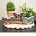 Please note: This Item features a variety of designs which are each sold individually (not as a set). Please add a note in your cart to indicate your preference.  If no style is specified, one will be selected at random by our team. Watercolor Chunky Wood Butterfly Sitters are unique decorative accents with nature-inspired style. Crafted from wood, the chunky sitters come in 3 assorted designs. The sitters depict realistic, colorful butterflies on a cream background with lightly distressed edges. One butterfly features shades of orange and black, one features shades of black, pink, gray, and white, and one features shades of green, brown, and black. The sitters are freestanding for stable display on a flat surface. Each measures 2.5” high by 4” wide by .75” deep.