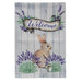 Welcome to My Garden Flag features a rabbit, watering can, gardening tool and plants. All the things that might be found in your favorite garden setting. Flag is a silky soft, durable, 2-ply polyester material with a sun block backing. Flag is machine washable and weather, mold, mildew, and UV-fade resistant. Measures 18" high by 12" wide and fits most standard garden flag poles. Flag pole not included.