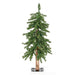 Pre-Lit Alpine Tree is an artificial Christmas tree with flexible plastic branches. Tree is pre-lit with a strand of 35 traditional, clear Christmas bulbs on a green electric cord. Tree includes a natural wood trunk that stands on a black, metal base. Measures 3 foot high.