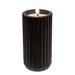 Black Fluted Pottery LED Candle is an LED-powered pillar candle with sleek design that suits rustic, traditional, or farmhouse decor. The candle features a slim shape with a fluted texture in a solid black shade. Unscented white wax fills the candle and a white artificial flame flickers with warm LED light for a realistic effect. A convenient switch allows for a timer function or simple on-and-off. Requires 2 AA batteries (not included). Measures 6" high by 3" in diameter.