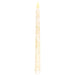 The Ivory Slender Timer Taper is an elegant electric candle crafted with rustic design. The wax-coated taper candle features a tall, slender shape and a lightly textured finish. A flame-shaped light offers a flicker effect for a realistic glow. A switch on the bottom allows for easy on/off or a convenient timer function. The taper comes wrapped in a paper sleeve and requires 2 AAA batteries, which are not included. Measures 10.75” high by .75” in diameter.