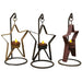 The Whimsical Tealight Star Stands are an assortment of three decorative tealight candle holders made of sturdy metal material in a star shape. Each star has a tealight candle cup and a black, mustard, or maroon finish. The stars are hung on an angled metal hanger stand, making these holders perfect for placing on a shelf or tabletop, bringing a charming, primitive touch to the home year-round. Each holder measures 9” high, each star measures 7” high by 5” wide. Please note: This item features a variety of designs which are sold individually (not as a set).