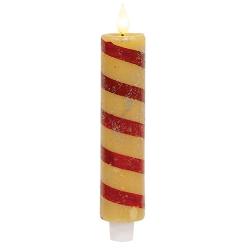 Thick Antiqued Candy Cane LED Taper is an electric taper candle with rustic seasonal design. The candle features an artificial flame with a realist...