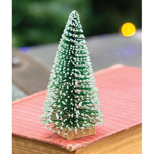 6" Snowy Bottle Brush Tree is a small tabletop tree that is perfect for adding color and texture to a holiday display. Tree features plastic needle...