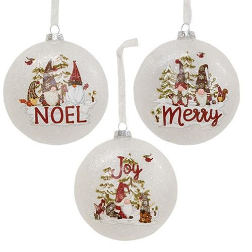 Frosted Glass Gnome Bulb Ornament is an assortment of three glass baubles with festive designs. Ornament comes ready to hang by a white ribbon and ...