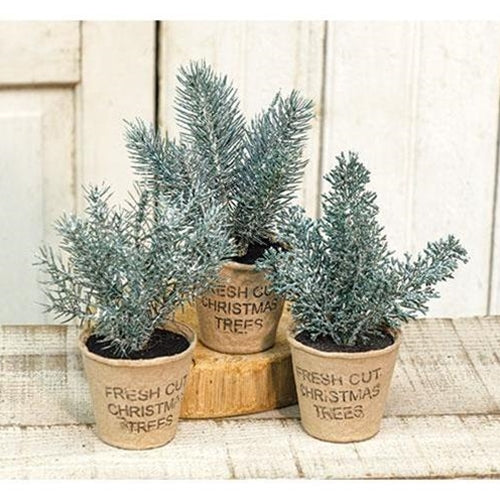 Frosted Tree in Paper Cups comes in 3 assorted styles (sold separately), each with a different faux evergreen plant that is frosted for the season....