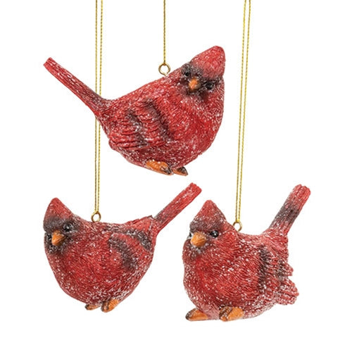 Glittered Resin Sitting Cardinal Ornament 3 Asstd.