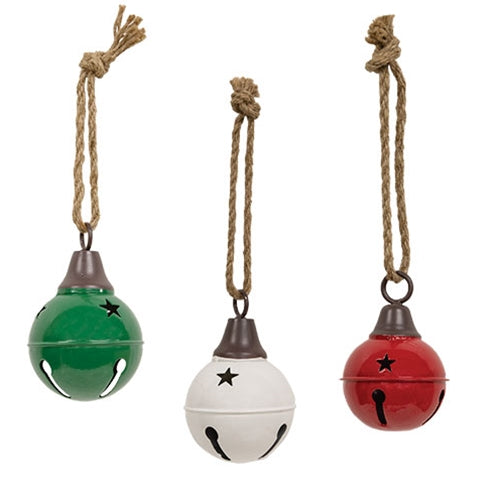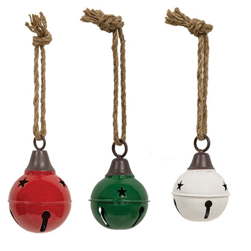 Glossy Metal Jingle Bell Ornaments are decorative metal jingle bells hung from jute rope. The bells come in assorted colors of red, white, and gree...