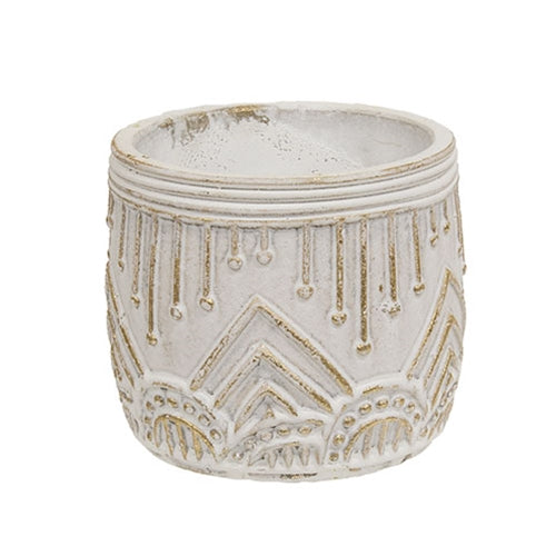 View full detailsGold Distressed White Aztec Embossed Cement Planter