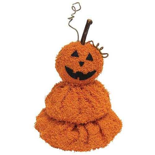 Melting Jack O Lantern Stack is a stuffed sitter with an orange fleece finish. Stack features black felt facial features and a stick stem with vine...