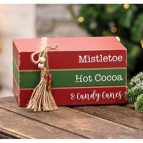 View full detailsMistletoe Hot Cocoa & Candy Canes Wooden Stacked Books