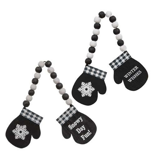Winter Wishes Hanging Mittens sells as an assortment of two winter garlands. Mittens are made of wood and feature a black and white finish with a p...