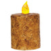 The Burnt Ivory Timer Pillar is a battery-operated LED pillar candle with a plastic flame tip and a distressed golden brown wax coating. The built-in timer feature keeps the candle lit for 6 hours and off for 18, relighting at the time you first switched it on. Also includes traditional on/off settings. Measures 2-1/2" high and 2-1/2" in diameter. Requires two AA batteries (not included).