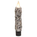 The Silicone Dipper Christ Gray Flame Motion Taper is an eye-catching electric candle with unique design. Clear silicone coats the candle, sprinkled with seeds and black specks for a textured look. A cutout flame detail sits at the top of the candle, illuminated by a small bulb and designed to wiggle for a realistic effect. The candle requires 1 AA battery (not included) and is operated by twisting the black base or using the remote (sold separately, search "M0402549"). Measures 5.5” high by 1.25” in diameter. Hand-dipped in the USA!