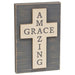 The Amazing Grace Cross Block is a decorative wooden sign featuring a distressed gray paint and natural worn edges. The sign displays an ivory wooden cross cutout that reads "Amazing Grace" acrostically in gray letters. The sign can be displayed year-round with everyday home decor with its neutral colors and simplistic design, whether displayed freestanding or on a wall using the carved keyhole hanger on the back. Measures 7.5" high by 5" wide by 1" deep.