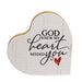 The My Heart Needed You Block is a decorative wooden block sign with a heart shape and distressed white finish. The block reads “God knew my heart needed you” in black script and features a red heart graphic. This block makes a beautiful wedding or anniversary gift and displays freestanding as an everyday accent to a table or shelf. Measures 5” high by 4.75” wide by .75” deep. Made in the USA!