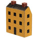 The Primitive Mustard Wood House Block brings a simple, rustic accent to farmhouse decor. The block depicts a tall saltbox house in a warm mustard color. Black painted details provide the look of a door, windows, and a roof. A weathered finish, distressed edges, and a burgundy chimney add a charming look. The block is freestanding for stable display on a flat surface. Measures 4.5” high by 3.5” wide by 1.5” deep.