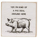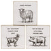 Sheep Happens Square Blocks are unique decorative accents made with playful farmhouse-inspired design. Crafted from wood, the blocks are each painted white and feature a lightly distressed finish. The blocks can stand freely on a flat surface or be hung from a wall using the pre-drilled keyhole hangers on the back. One block depicts a sketch of a sheep and reads, “sheep happens.” One depicts a goat sketch and reads “hey, whatever floats your goat.” One block depicts the pig sketch and reads “yep, I’m kind of a pig deal around here.” Each measures 4” high by 4” wide by .75” deep. Please note: This Item features a variety of designs which are each sold individually (not as a set). Please add a note in your cart to indicate your preference.  If no style is specified, one will be selected at random by our team.
