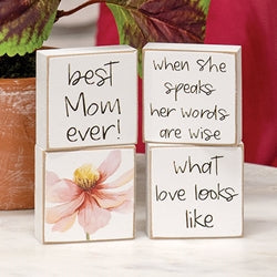 The What Love Looks Like Mini Square Blocks bring a thoughtful touch to springtime or everyday decor. A soft white shade serves as the background f...