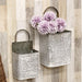 2/Set Shabby Chic Rectangle Basketweave Buckets sells as a set of two metal buckets with a weathered white finish. Buckets have a basketweave texture and a flat bottom for freestanding display and they come with a metal loop for hanging. Buckets are perfect for displaying florals and the smaller bucket measures 15" high by 7" wide by 4.5" deep and the larger bucket measures 19" high by 9" wide by 5.5" deep.