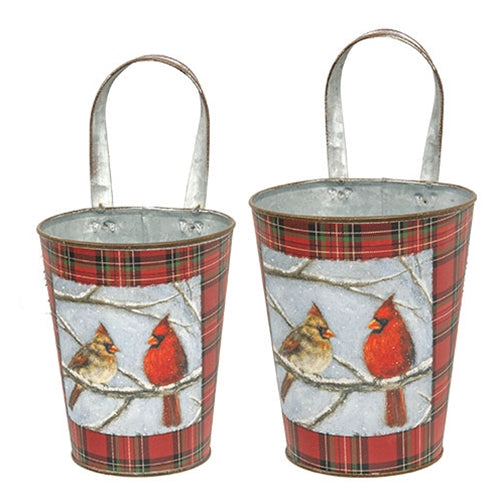 2/Set Cardinal Pair Plaid Metal Wall Buckets