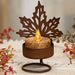 Fall Leaf Rusty Tealight Holder is a rustic candle holder perfect for accenting Autumnal decor. The tealight holder is made of metal and features a cutout leaf shape and rusted finish. It can hold tealight or votive candles 1.75" in diameter or smaller. Measures 4.25" high by 3.25" wide by 2.75" deep.