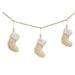 Add a sweet and simple accent to the home with the Natural Christmas Stocking Fabric Garland. This decorative garland features five miniature stockings made from natural-colored linen-style fabric with fluffy white cuffs, each on a string loop accented with white wooden beads. The stockings are tied on a length of jute string for a rustic touch. This garland looks delightful wrapped around a tree, hanging along a mantel, or accenting a wreath, adding a bit of farmhouse charm for the holiday season. Measures approx. 4 feet long.