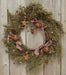 Our Rustic Holiday Pine has a pine look accented with assorted size berries, rusty bells, pine cones and torn fabric bows. 12" diameter.
