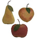Stiffened Primitive Fruit sells as an assortment of three primitive fabric fillers with fruit designs. Fruit comes in a pear, peach, or apple design and features primitive detailing that looks great in a wooden bowl or basket for display throughout the year. Pear measures 6.5" high y 3.5" wide by 2" deep; Peach measures 4" high by 3.75" wide by 2" deep; Apple measures 4.25" high by 3.75" wide by 2" deep. Please note: This item features an assortment of designs which are each sold individually (not as a set).