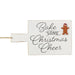 The Bake Some Christmas Cheer Ornament is a decorative wooden cutout ornament in the shape of a kitchen cutting board with a white painted finish. The ornament reads “Bake some Christmas Cheer” in fanciful black script and features a wooden cutout gingerbread man graphic. The top of the ornament includes a jute string loop to use for a hanging display, perfect for placing on a Christmas tree, or in a kitchen space during the holiday season. Measures 7” high by 4” wide by .25” deep.
