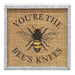 Bee's Knees Metal Box Sign is a freestanding sign with a galvanized metal frame and a rustic burlap print. It reads, "you're the bee's knees" in black lettering and features an illustrative bee in the center. Sign is perfect for shelf, mantel, or tabletop display and can be hung on nails or picture hangers for wall display. Measures 6" square by 1.25" deep.