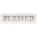 Blessed White Framed Sign is made of wood and features a painted and distressed white finish. Sign has a pre-installed sawtooth hanger for wall display and it reads, "blessed" in faded gray lettering. Sign has a flat base for the option of freestanding display and it looks great on a mantel, shelf, or console table. Measures 4.5" high by 16" wide by .75" deep.