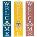 The Bunny Bum Welcome Signs are an assortment of three tall decorative wooden signs with a sunshine-yellow, mauve-pink, or teal-blue painted finish. The signs read "Welcome" in bold white lettering and feature gray and white bunny bum art, complete with pawprints and a fluffy tail. These signs are an adorable festive touch to the home during Spring and Easter, displayed hanging using the jute rope at the top, or propped upon a hearth or porch. Each sign measures 24" high by 6" wide by .5" deep. Please note: This Item features a variety of designs which are each sold individually (not as a set). Please add a note in your cart to indicate your preference.
