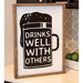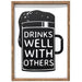 Drinks Well With Others Framed Sign is a wood framed sign that features an illustration of a foaming beer mug with the phrase, "Drinks Well With Others." This piece looks great displayed in entertainment areas of the home, such as a den, kitchen, or man cave. Measures 13.75" wide by 1.25" deep and 19" high.