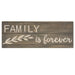 Family Is Forever Engraved Pallet Look Sign is a primitive wood sign that reads, "family is forever" in engraved white lettering. Sign is accented by engraved floral filigree and it features two d-ring hangers for wall display in an entryway or living room. Measures 6" high by 16" wide by 1.75" deep.