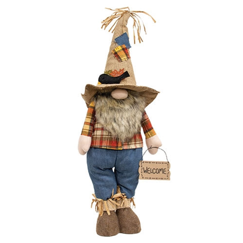 The Standing Gnome with Welcome Sign and Crow is a unique tall plush with festive seasonal design. The gnome is shown in a standing position with f...