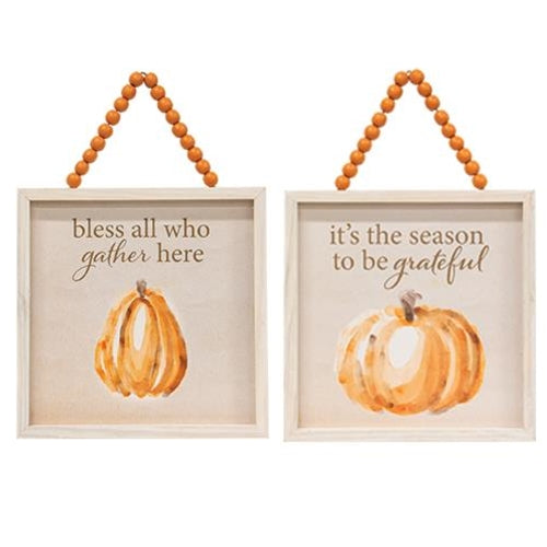 Bless All Beaded Sign is an assortment of two fall signs. Sign is framed and features a weathered white finish that is accented by a watercolor pum...